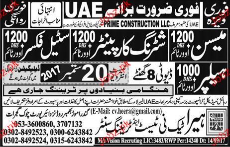 Mason, Tile Mason, Shuttering Carpenters Job Opportunity