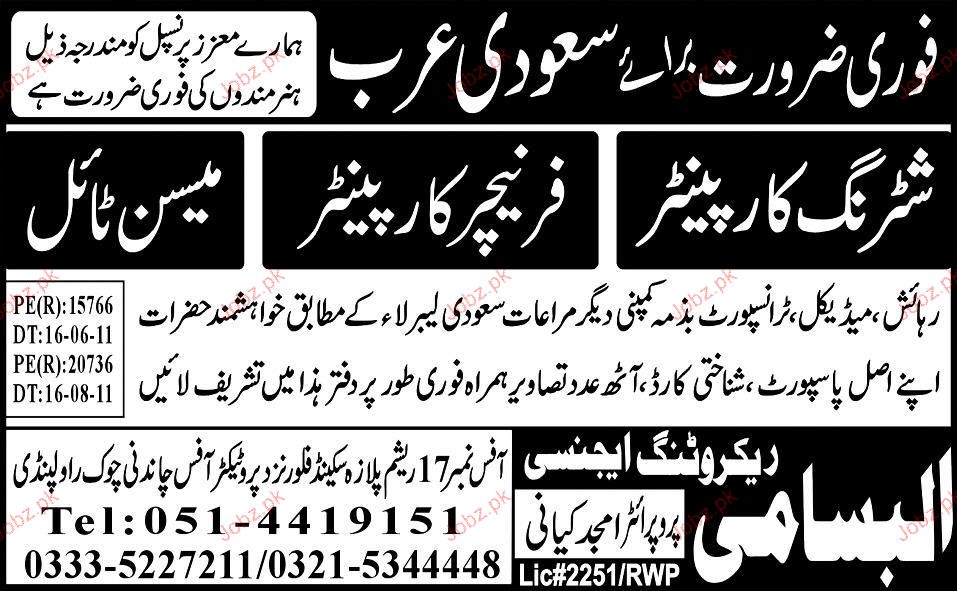 Mason Tile, Shuttering Carpenter Job Opportunity