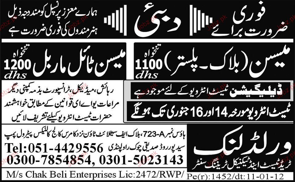 Mason Tiles And Mason Block Plaster Job Opportunity