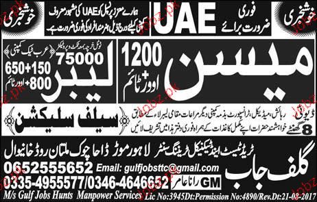 Masons and Labors Job Opportunity