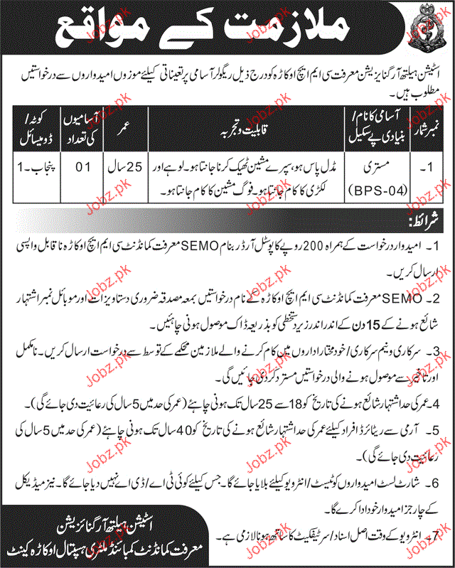Apply as per details in job advertisement. Login to view further details of how to apply via https://www.jobz.pk online.