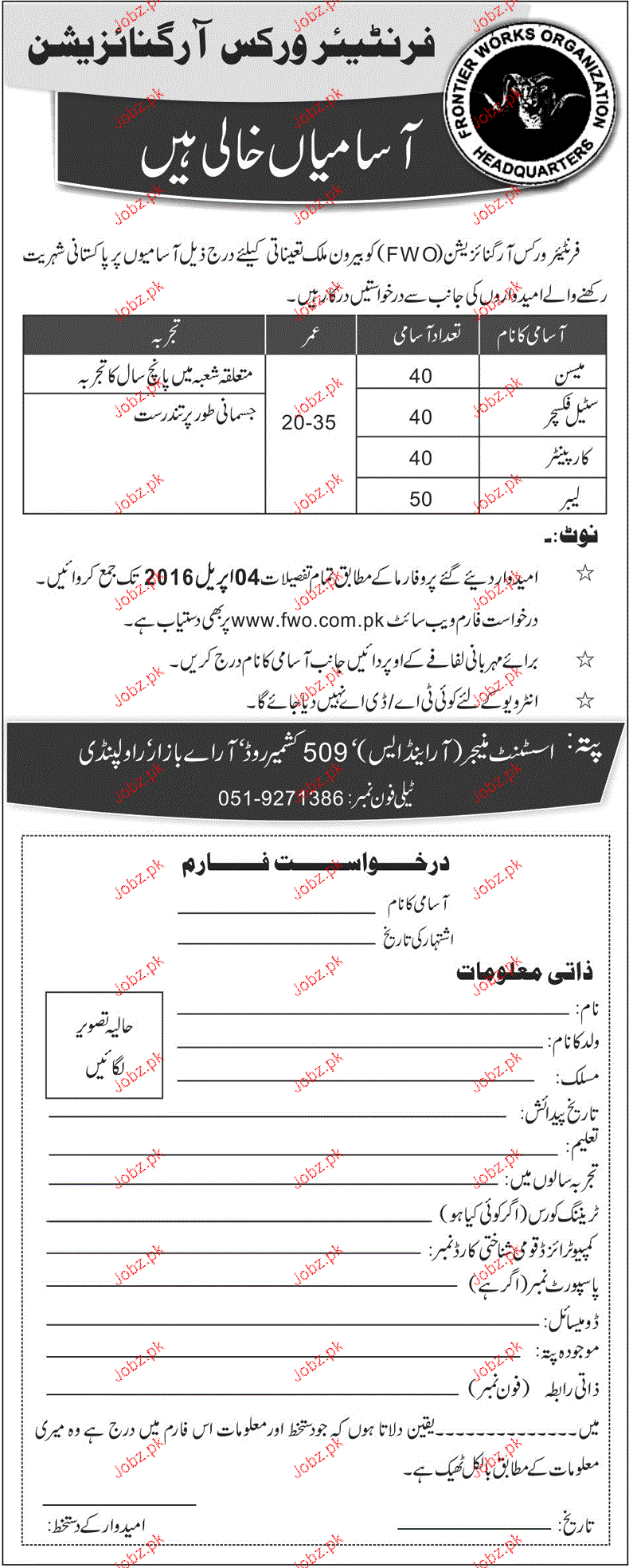Apply as per details in job advertisement. Login to view further details of how to apply via https://www.jobz.pk online.