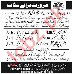 Vacancies in Master Ballpoint Pen Industries Pvt Ltd Advertisement April 2019