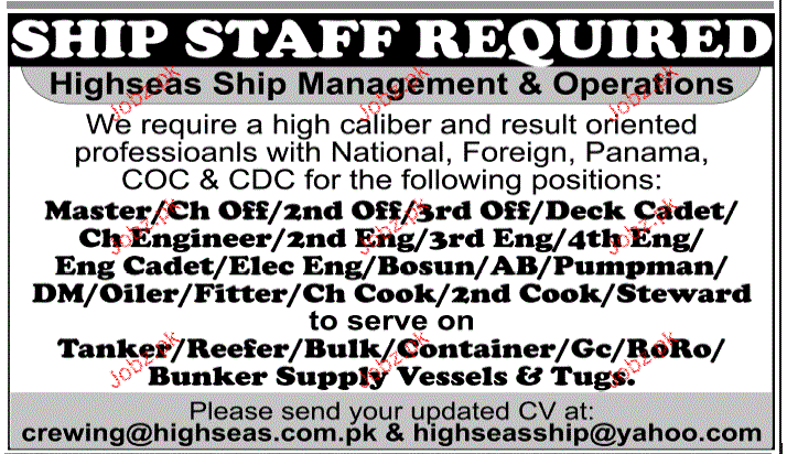 Master, Chief Engineers, DM, Fitters Job Opportunity