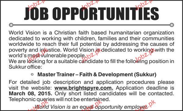 Apply as per details in job advertisement. Login to view further details of how to apply via https://www.jobz.pk online.