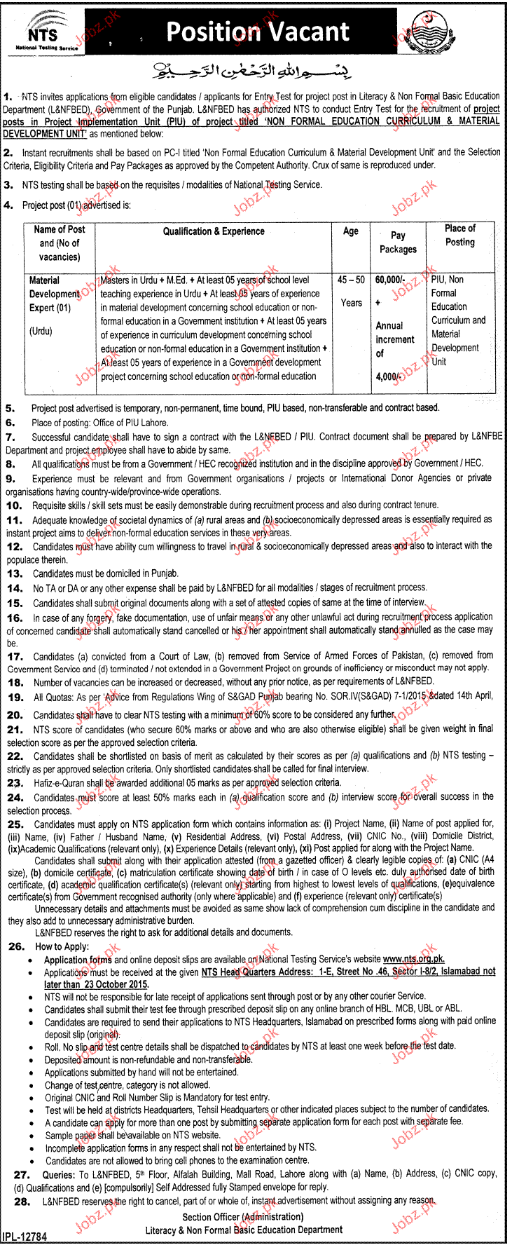Apply as per details in job advertisement. Login to view further details of how to apply via https://www.jobz.pk online.