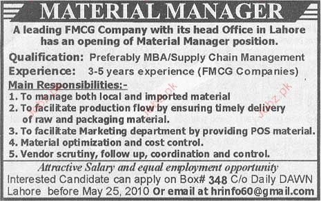 Apply as per details in job advertisement. Login to view further details of how to apply via https://www.jobz.pk online.