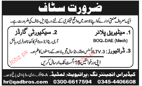 Apply as per details in job advertisement. Login to view further details of how to apply via https://www.jobz.pk online.