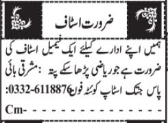 Private School invites applications for job positions advertised in daily Jang dated 29 August 2025 for following vacancies in Quetta, quetta Balochistan Pakistan.