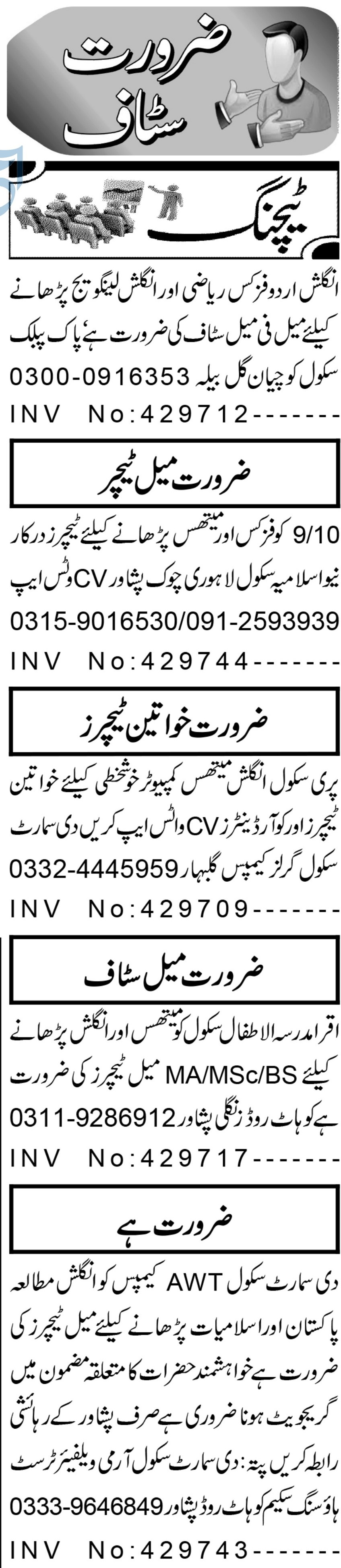 Latest Private School Teaching Posts Peshawar 2025
