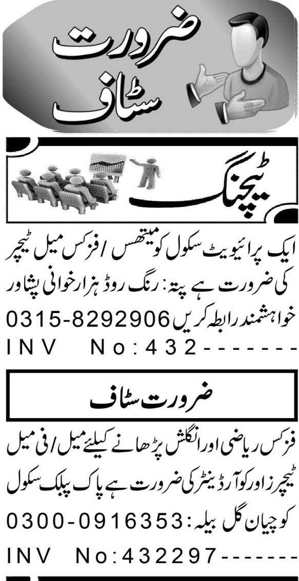 Private School is looking for candidates for following posts as per job advertisement published in daily Aaj Newspaper of July 2, 2024 for location Peshawar, peshawar Khyber Pakhtunkhwa KPK Pakistan: