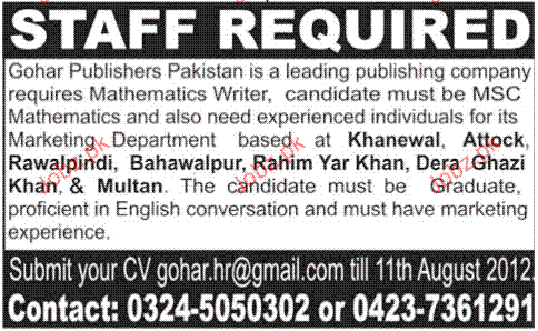 Apply as per details in job advertisement. Login to view further details of how to apply via https://www.jobz.pk online.