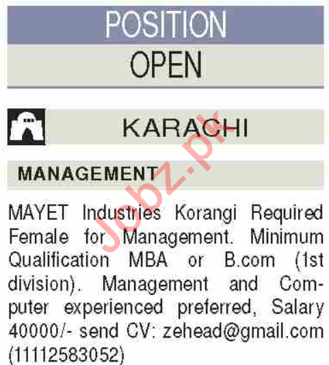 Mayet Industries Korangi Jobs 2020 For Female Manager
