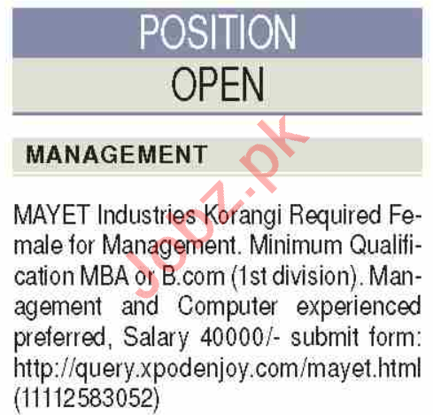 Mayet Industries Korangi Karachi Jobs 2020 For Managers