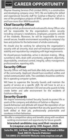 Latest Maymar Housing Services Pvt Limited Security Posts Karachi 2025