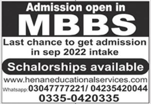 Henan Educational Services & Medical Coaching Centre admissions 2023 for MBBS has been announced. Eligible students who qualify as per admission criteria in Henan Educational Services & Medical Coaching Centre Islamabad Islamabad Pakistan can apply in Medical University for academic year 2023. Students for admissions in MBBS & criteria can apply as per Private institute admission policy 2023 before closing date April 19, 2023 as per advertisement. Read newspaper ad for exact details.