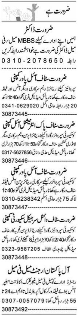 Private Company latest Classifieds Human Resource jobs and others can be applied till 21 April 2024 or as per closing date in newspaper ad. Read complete ad online to know how to apply on latest Private Company job opportunities. Skills in Health, Field Sales, Accounting, Medical and Security may be preferred for these Private Company jobs. Facilities like accommodation, food and medical may be provided.