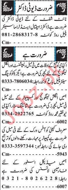 Latest Hospital Clinic Medical Posts Quetta 2025