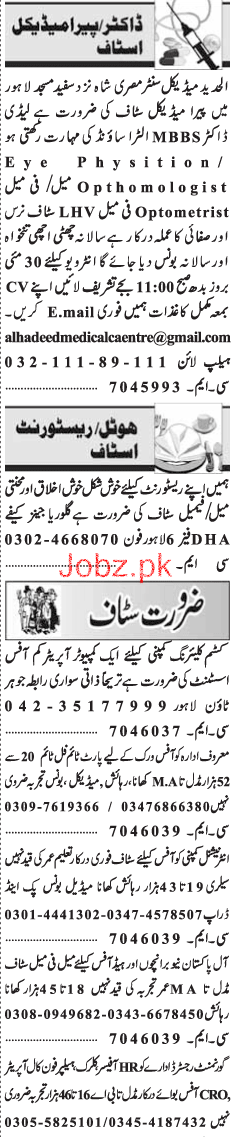 Apply as per details in job advertisement. Login to view further details of how to apply via https://www.jobz.pk online.