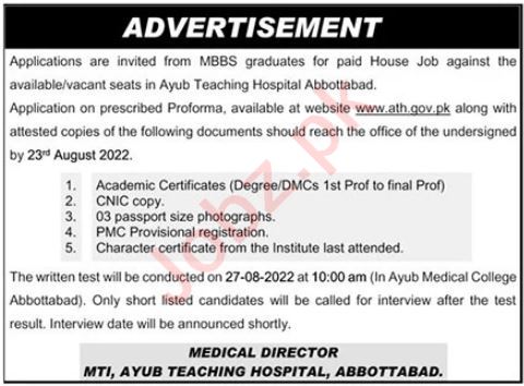 Vacancies in Ayub Teaching Hospital ATH Advertisement August 2022