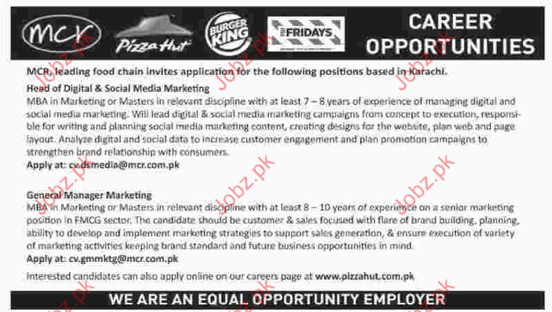 Apply as per details in job advertisement. Login to view further details of how to apply via https://www.jobz.pk online.