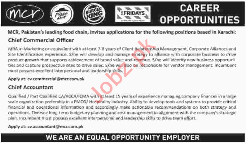 MCR Pakistan Jobs 2018 For Accountant & Commercial Officer