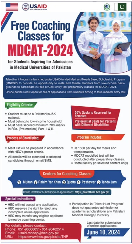 United States Agency for International Development USAID has announced admissions 2024 for MDCAT. Students who want to take admissions in United States Agency for International Development USAID Islamabad Islamabad Pakistan for academic year 2024 to continue education in Science University can apply. Eligible candidates for admissions in Course can apply as per Private institute criteria and before closing date 10 June 2024 after reading advertisement online. Read newspaper ad for exact details.