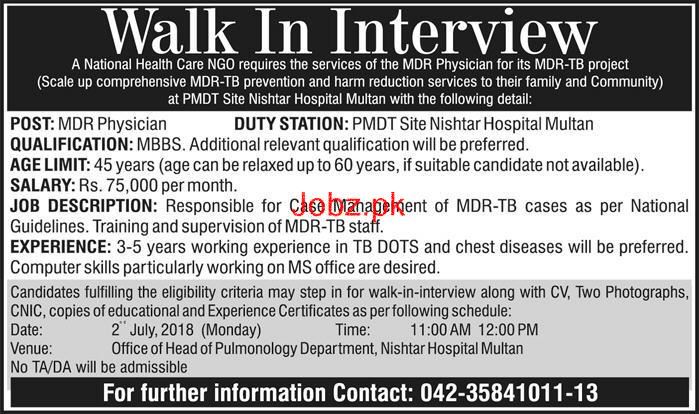 Latest National Health Care NGO Medical Posts Multan 2025