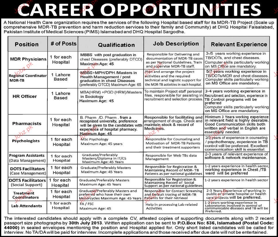 Apply as per details in job advertisement. Login to view further details of how to apply via https://www.jobz.pk online.