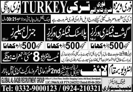Vacant posts including plastic factory worker, general helper and meat factory worker are announced in Life Trade Test & Technical Training Center Ankara, istanbul Turkey as per 7 May 2025 advertisement in daily Express Newspaper. Persons with Intermediate and Matric etc. education can apply.