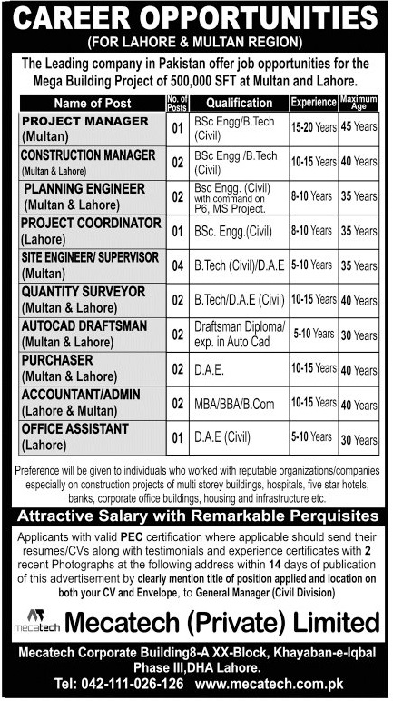 Latest Mecatech Pvt Ltd Management Posts Multan 2025