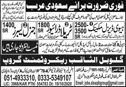 Vacancies in Global Al Saqib Recruitment Group Advertisement November 2020