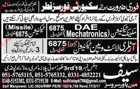 Mechanic Technicians, Technicians and Pin Technicians Wante