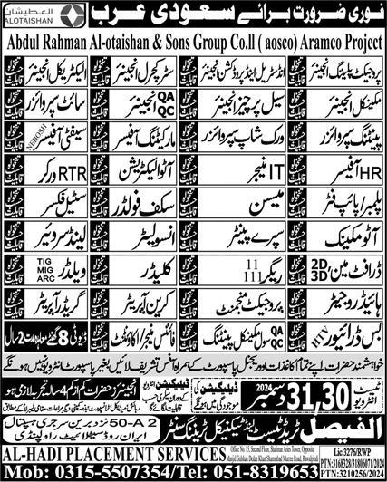 Vacancies in Al Hadi Placement Services Advertisement December 2024