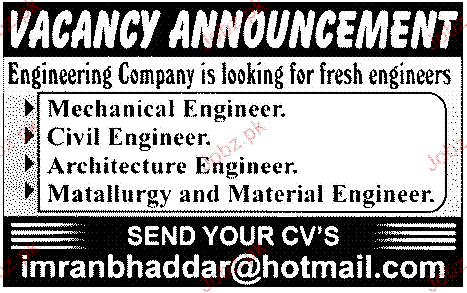 Mechanical Engineer, Civil Engineer Job Opportunity