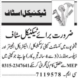 Engineering Company Sheikhupura, sheikhupura Punjab Pakistan invites applications from eligible candidates for the post of electrical engineer, engineer and mechanical engineer as per advertisement of July 1, 2022 published in daily Jang Newspaper. Preferred Education is Bachelor and Intermediate etc.