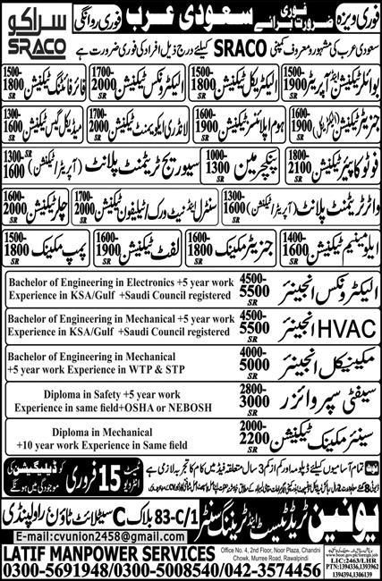 Union Trade Test and Training Center jobs advertisement dated about 14 February 2023 in daily Express Newspaper invites application for the vacant post of water treatment plant technician, home appliances technician, generator mechanic, electronics technician, electrical technician, lift technician, water treatment plant operator, central network technician, safety supervisor, generator technician, chiller technician, mechanical engineer, sewerage treatment plant operator, mechanic technician, laundry equipment technician, telephone technician, medical gas technician, puncture man, electronics engineer, sewerage treatment plant technician, boiler technician operator, firefighting technician, pump mechanic, photo copier technician, aluminium technician and hvac engineer in Jeddah, riyadh Saudi Arabia. Candidates with Bachelor, Intermediate and Matric etc. educational background will be preferred.