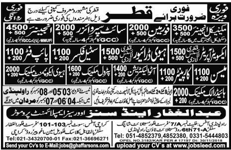 Vacancies in Abdul Ghaffar & Sons Advertisement December 2018