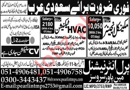 Latest Pearl International Manpower Services Engineering Posts Saudi Arabia 2025