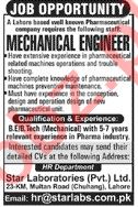 Mechanical Engineer Jobs 2021 in Star Laboratories