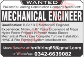 Construction Company Islamabad, islamabad Islamabad Pakistan invites applications from eligible candidates for the post of mechanical engineer as per advertisement of July 21, 2024 published in daily Jang Newspaper. Persons with Bachelor etc. education can apply.