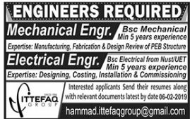 Mechanical Engineer Jobs in Ittefaq Group of Companies