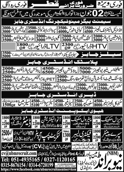 New Brand Manpower is looking for candidates for following posts as per job advertisement published in daily Express Newspaper of June 1, 2024 for location Doha, doha Qatar: