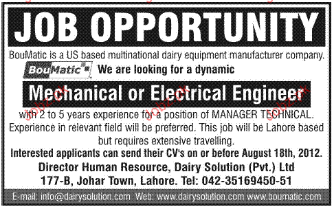 Mechanical Engineers And Electrical Engineer Job Opportunity