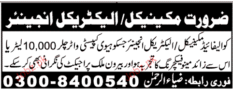 Mechanical Engineers And Electrical Engineers Wanted
