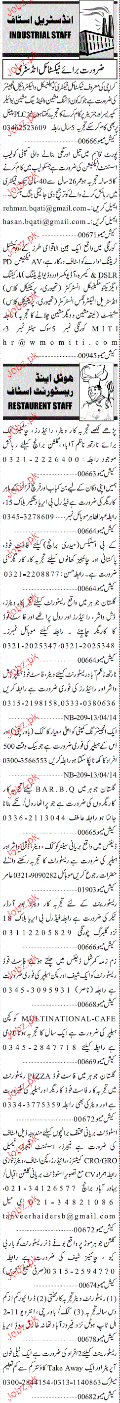 Mechanical Engineers, Electrical Engineers, Machine Boilers, Instructors and Restaurant Staff are required in Karachi