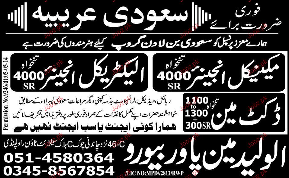 Mechanical Engineers, Electrical Engineers and Ductman are required in Saudi Arabia