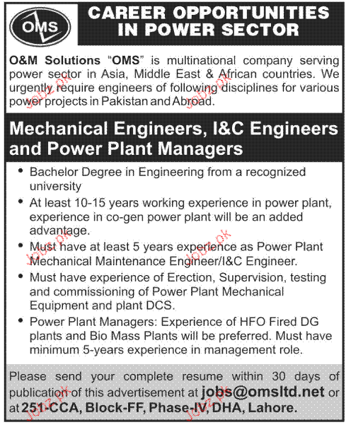 Mechanical Engineers, I & C Engineers Job Opportunity