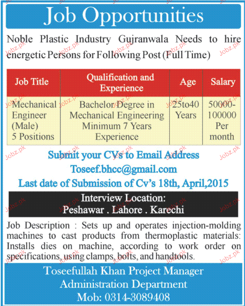 Apply as per details in job advertisement. Login to view further details of how to apply via https://www.jobz.pk online.