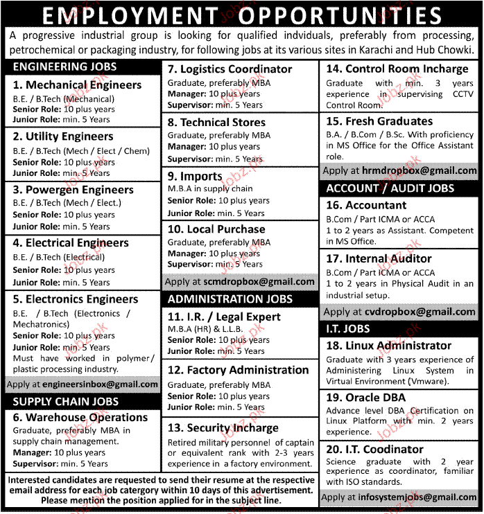 Apply as per details in job advertisement. Login to view further details of how to apply via https://www.jobz.pk online.